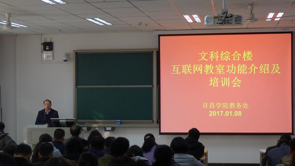 培训会现场向参会人员发放了教务处编写印制的《文科综合楼(E楼)互联网教室使用手册》。培训会上,教务处周颖杰处长从当前教育信息化发展的趋势、互联网对高等教育的影响和作用等方面,强调了将互联网技术应用于课堂教学的作用和意义,并鼓励教师掌握和运用现代信息技术,不断提高教学质量。教务处副处长殷志锋介绍了文科综合楼教室的类型、分布、座位数等情况,并讲解了互联网教室的使用流程和注意事项教务处冯建成老师还就互联网教室设备的操作方法进行了现场演示。
