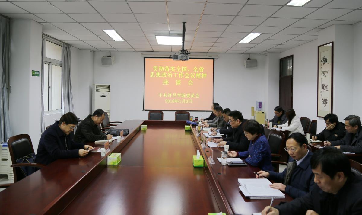 闫书记从学校学习传达会议精神、认真落实文件明确的目标要求和重点任务、积极推动文件的刚性规定和量化指标落地、学校意识形态工作责任制的落实、基层党组织建设和党员发展、学校思想政治工作的特色亮点等方面汇报了bet36体育在线贯彻落实全国全省高校思想政治工作会议精神的情况。院长赵继红介绍了学校“大思政”工作格局的构想和实施情况,党委副书记孙海重点介绍了学校近年来在开展思想政治工作方面取得的成绩和特色经验。