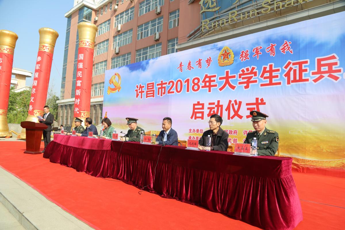 4月20日上午,许昌市2018年大学生征兵工作启动仪式暨工作部署会在bet36体育在线举行。许昌市委常委、军分区政委冯奕,bet36体育在线党委副书记孙海、许昌市政府副秘书长杨春香等出席。市委宣传部、市教育局、许昌军分区和许昌6县(市、区)的分管领导、人武部领导、许昌职业技术学院、许昌电气职业学院、许昌陶瓷职业学院和bet36体育在线师生代表近2000人参加启动仪式。