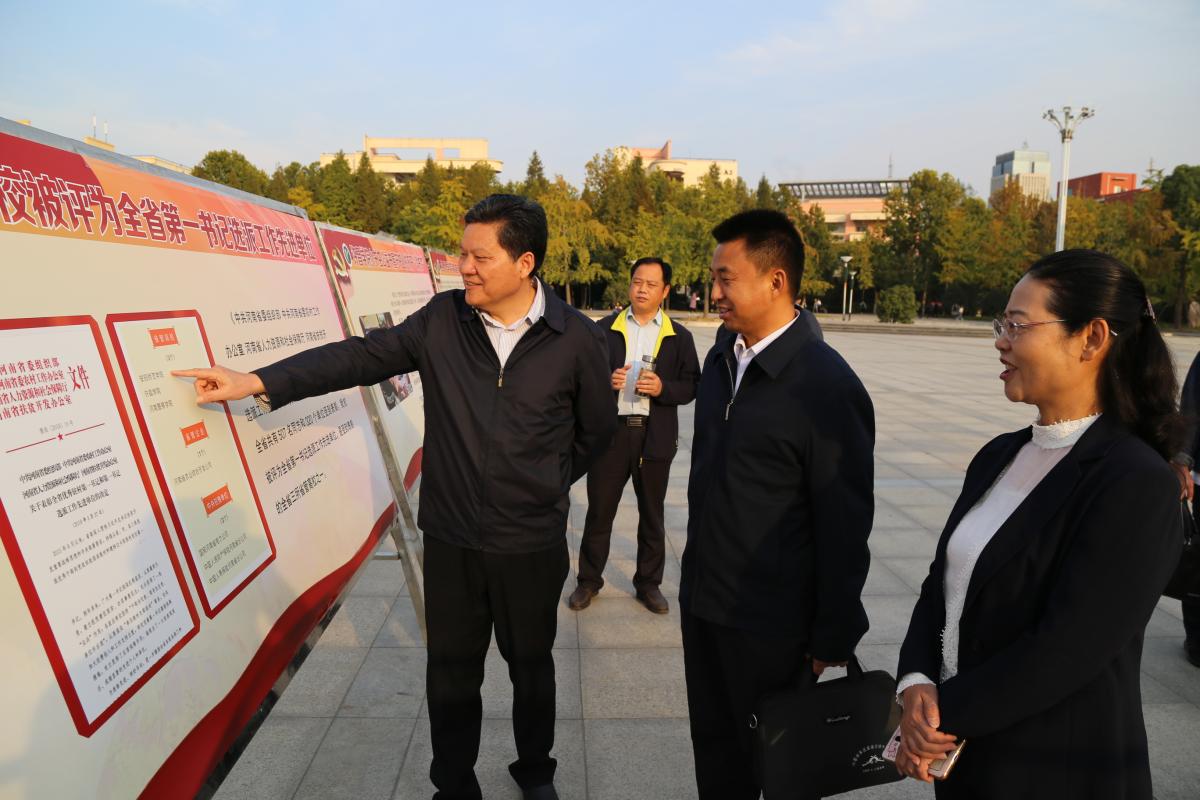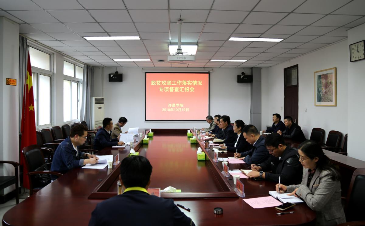1019日下午,省教育厅教育脱贫攻坚工作督查组一行三人莅临bet36体育在线,对教育脱贫攻坚工作进行督导检查。bet36体育在线在办公楼会议室召开汇报会,校工会主席高金星出席汇报会,党办公室、组织部、宣传部、学工部(处)、校地合作办相关职能部门负责人及相关人员参加会议。汇报会由党政办公室主任潘春彩主持。