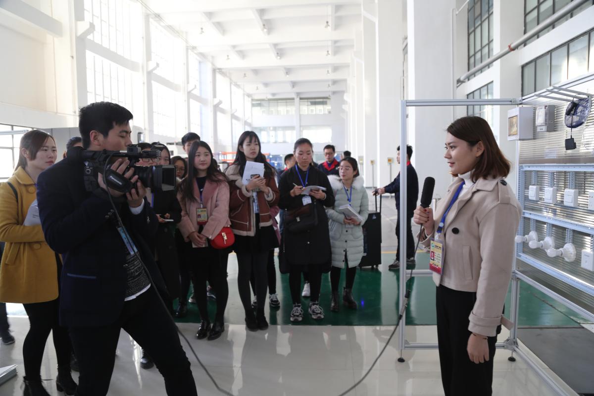 学生记者在“校媒记者看许院”活动中到bet36体育在线工程技术中心采访