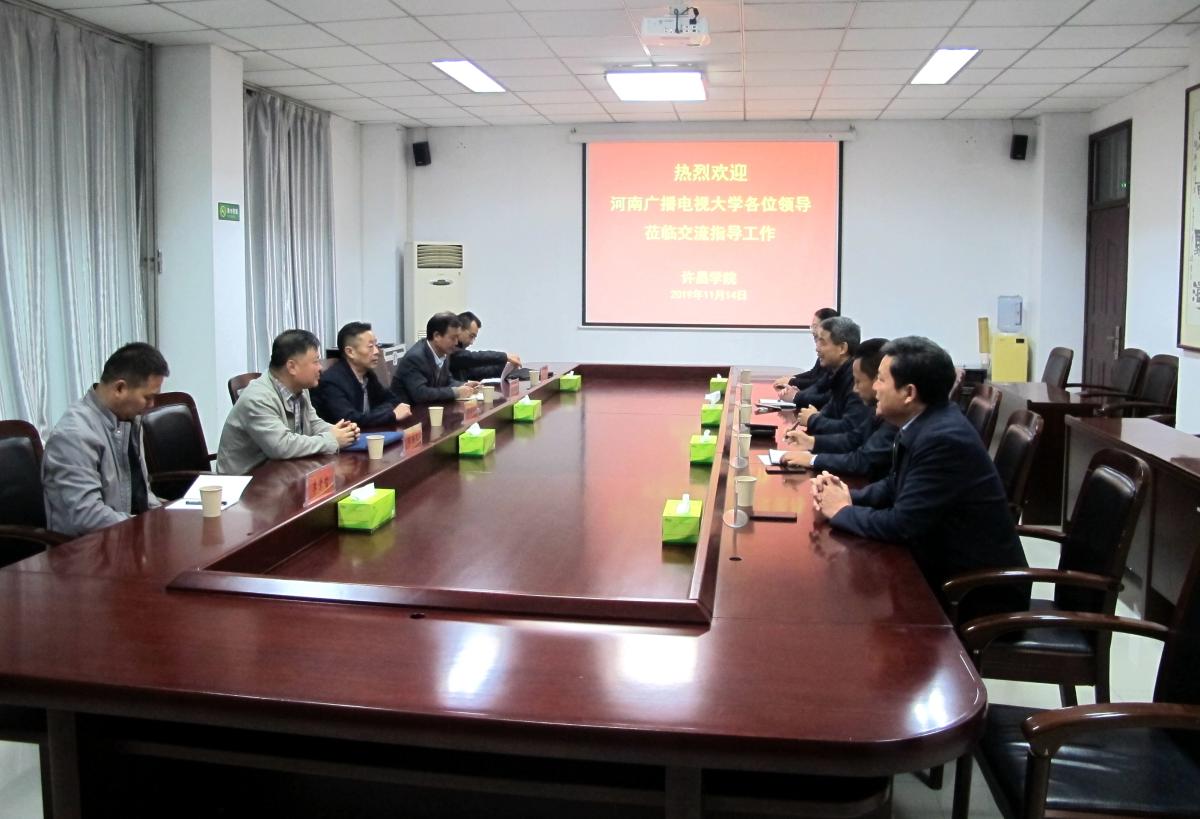 11月14日下午,河南广播电视大学副校长周海兴、李小明、王海天及学校党政办公室、党委宣传部负责同志一行5人到bet36体育在线交流考察工作。院长岳修峰会见了河南广播电视大学客人,双方进行了座谈交流,党委副书记孙海、副院长郭涛、工会主席高金星出席座谈会。