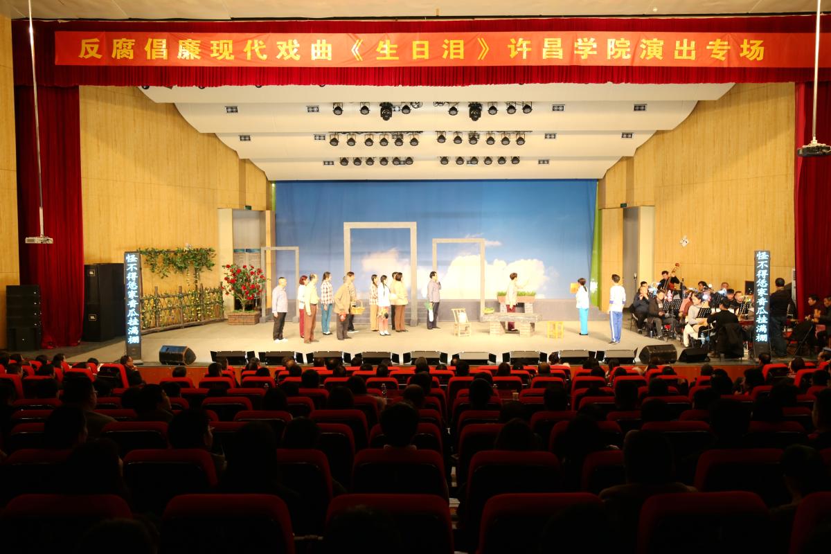“不是自己的饭碗不要端,不是自己的衣裳别往身上穿!”“官再大不能对百姓冷脸,为百姓做实事才是好官!”12月18日,大型原创反腐倡廉现代戏,第八届黄河戏剧节金奖剧目《生日泪》在bet36体育在线音乐厅进行了专场演出,校领导罗凤英、崔斌、黄怡俐、高金星与全校科级以上干部、师生代表共同观看了演出。