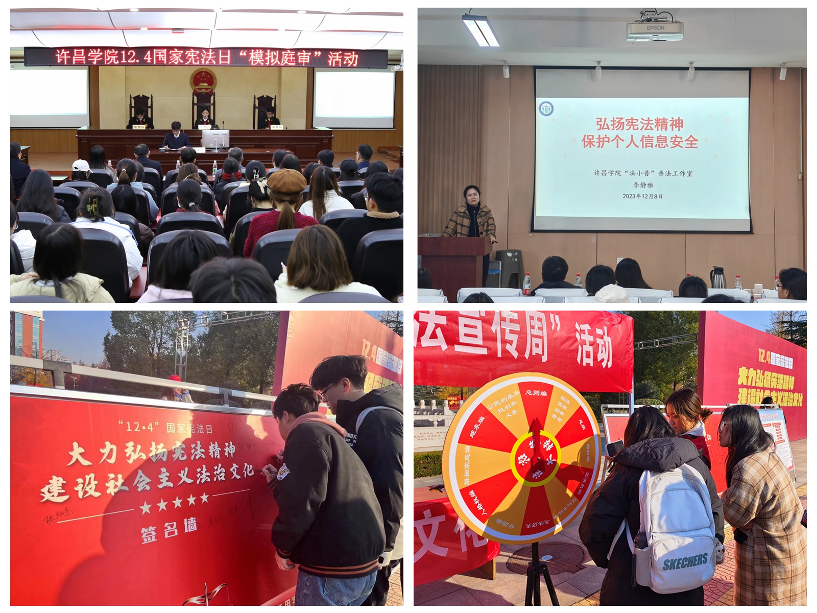 本次“宪法宣传周”以“大力弘扬宪法精神建设社会主义法治文化”为主题,开展了宪法晨读、宪法主题学术讲座、模拟法庭庭审、法治观影、普法专题宣讲、普法户外宣传、法律援助等一系列宣传学习教育活动,普及宪法知识,传递法治观念,引导学校师生将宪法精神内化于心、外化于行,争做社会主义法治的忠实崇尚者、自觉遵守者、坚定捍卫者,营造了尊崇宪法、学习宪法、遵守宪法、维护宪法、运用宪法的良好氛围。(图片由法学院提供)