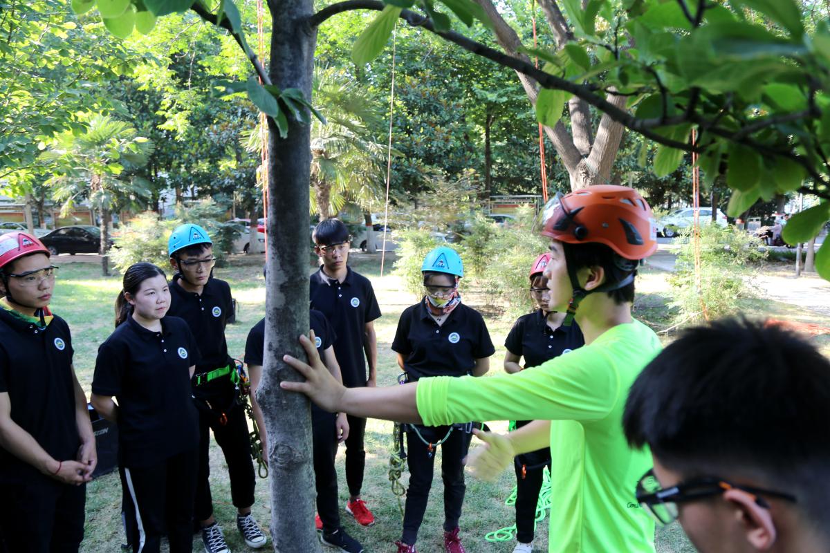 攀树,不仅是一项运动技能,还可以学以致用。户外教研室主任刘振坤告诉我们,将来这些户外方向的同学在青少年营地实习、工作时,利用在校所学到的这些户外技能,可以开展一系列青少年自然教育、探索教育的项目。